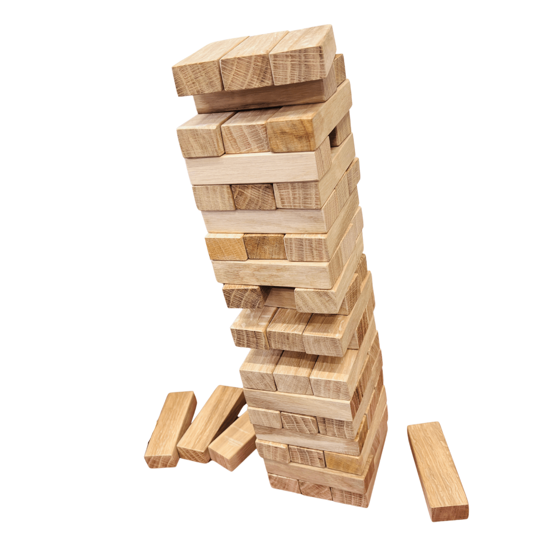 - Secondary Use: Tree stake offcuts are transformed into Tumbling Towers blocks